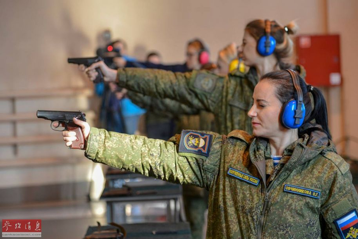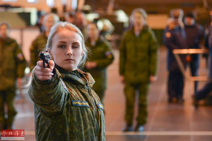 手枪实弹射击也是此次“选美”大赛的重点项目,战斗民族的女兵必须要文武兼备。