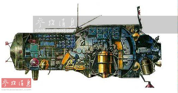 图为“礼炮”6号(民用)空间站的地面展示模型,虽然军用型和民用型在用途上存在较大差异,但在总体设计上还是有相似之处的。