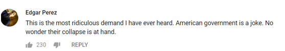 ▲“这简直是我听过最可笑的要求了。美国政府就是一个笑话,美国在他们手中崩溃了也不足为奇了。”