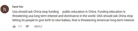 ▲“美国应该让中国停止开办学校,办学威胁了美国统治世界的长期利益。美国应该让中国停止生小孩,这也威胁了美国人长期利益。”