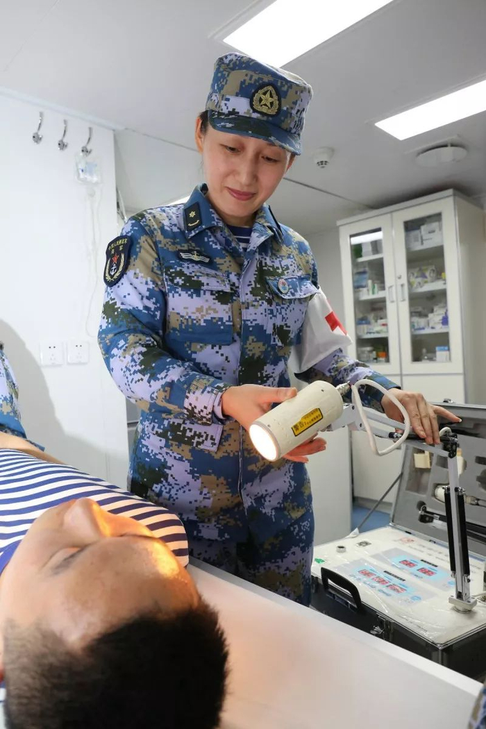 她们用女性特有的细腻情感和专业的护理技术,先后诊疗356例,帮助官兵消除了溃疡、发炎、过敏等病痛的折磨,调理了擦伤、碰伤、扭伤等伤痛的困扰,有效地维护了官兵身体健康,确保了护航期间各项工作的有序开展。