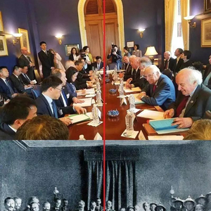 再联系昨天公布的刘鹤行程,右边很可能是美国议员。