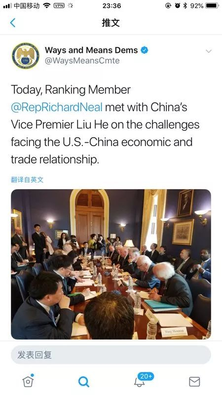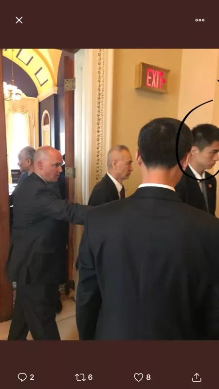 众所周知,昨天新华社发布刘鹤在美行程通稿时,没有发布图片。不过环环在推特上看到了这两张图。