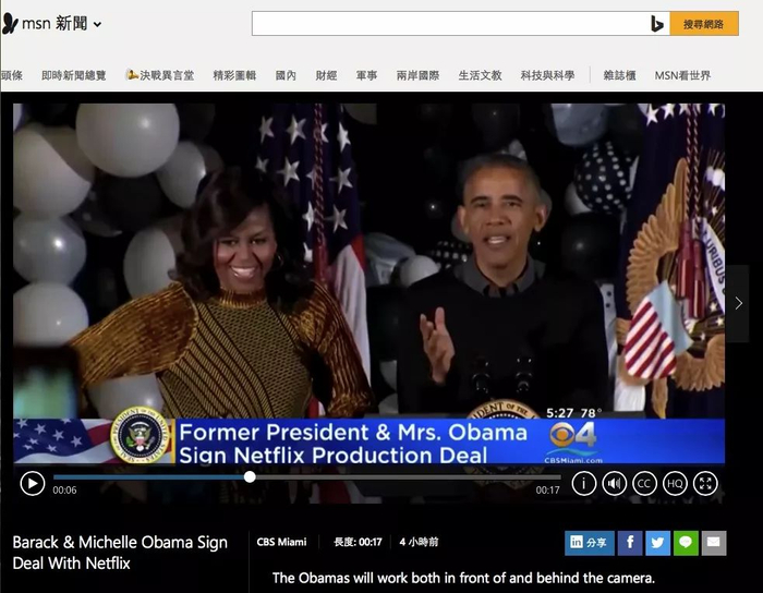 他们还不是玩票,Netflix称,奥巴马将制作多种类型的内容产品,包括剧本连续剧、无剧本剧集、纪录片系列以及特别节目等,这些项目将呈现给Netflix在190个国家1.25亿的用户。