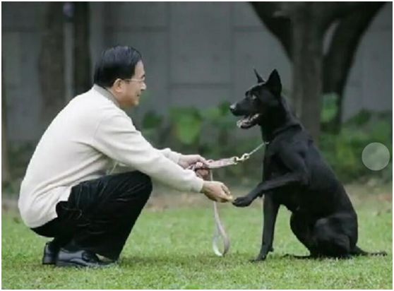 这只狗背后的人就是陈水扁,台湾前“省长”,一个“台独”分子,按道理应该铁门铁窗铁锁链在监狱服刑的贪污犯,实际上靠保外就医在岛内潇洒兴风作浪。