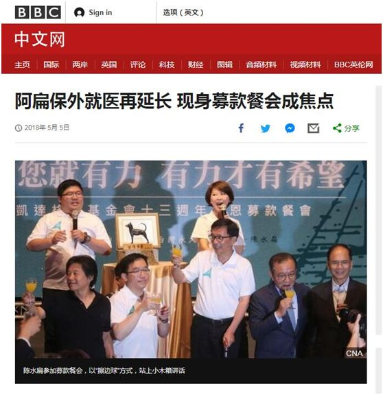 ▲英国广播公司网站称,陈水扁的保外就医已经第14次被延长。凸显对此感到不可思议。