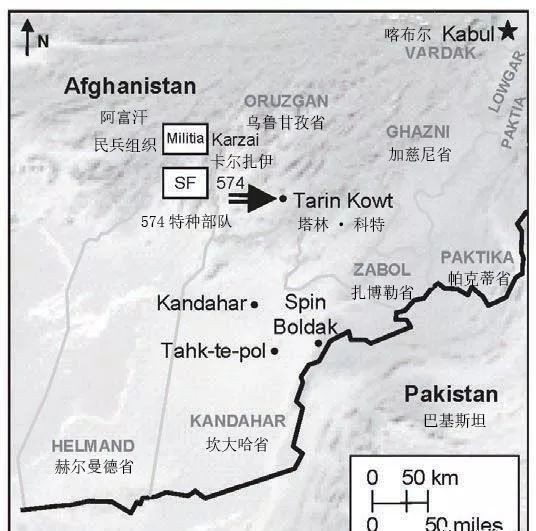 在他到达的时候,阿富汗民主共和国军队的领导人杰森•阿梅林上尉与卡尔扎伊坐下来建立了关系,并掌握了卡尔扎伊所了解的情况。一个月前,阿梅林在巴基斯坦短暂会晤了卡尔扎伊,当时他还与美国高级指挥官进行了初步讨论,讨论他们如何与普什图领导人合作打击塔利班。现在他们都在阿富汗,卡尔扎伊告诉美国官员,赢得坎大哈和乌鲁兹甘省作战行动的关键是占领位于坎大哈市以北75英里处的塔林科特镇。哈米德•卡尔扎伊(Hamid Karzai)将塔林科特(Tarin Kowt)描述为塔利班活动的核心,而塔利班所有主要领导人都有家人在塔林科特(Tarin Kowt)附近居住。毛拉·奥马尔来自Rawod,就在塔林科特(Tarin Kowt)的西边。因此,夺取塔林·科科特会打击塔利班的士气。此外,卡尔扎伊认为,如果拿下塔林科特,基本普什图族的所有村民都将与他共同战斗。