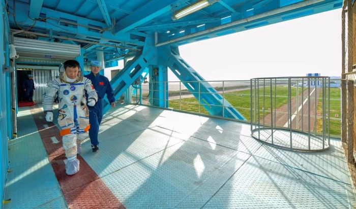 据悉,训练期间,全体航天员还在酒泉卫星发射中心开展了发射场待发段紧急撤离训练。