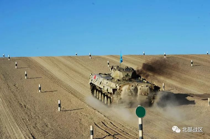“前方反坦克堑壕,注意减速!”电台传来车长提示,只见步战车迅速减挡,然后进壕、爬升,提挡、加速。一股浓烟喷出,步战车在马达轰鸣声中冲上土岭,并相继通过涉水场、车辙桥、侧倾坡、崖壁等障碍区。