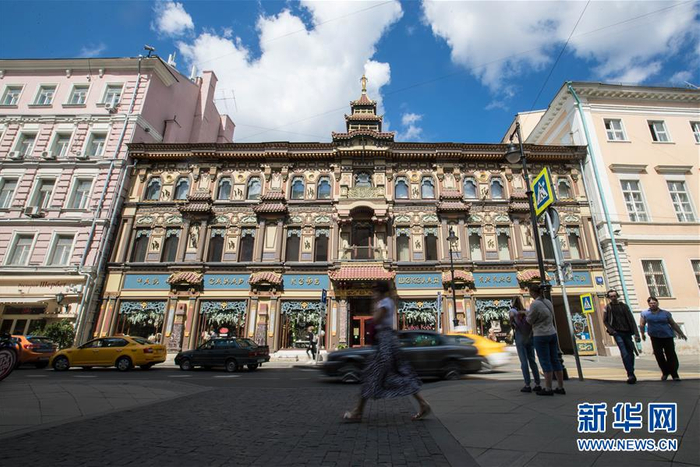 这是7月20日,人们走过位于俄罗斯莫斯科梅相斯卡亚街的“茶和咖啡”商店。俄罗斯莫斯科市中心的梅相斯卡亚街上,有一座别具特色的中式建筑——“茶和咖啡”商店。这是19世纪末俄罗斯知名茶商谢尔盖·别尔洛夫为迎接清朝大臣李鸿章来访专门修建的,他想借李鸿章来莫斯科的机会与清政府签订更多茶叶合同。尽管李鸿章最终并没有亲临别尔洛夫精心准备的中式茶楼,这个别具匠心的建筑使得别尔洛夫声名鹊起,生意也更加红火。一百多年来这里一直是售卖茶和咖啡的商店。如今,这里出售来自中国、日本、印度、斯里兰卡和肯尼亚的茶叶,以及来自意大利、巴西和哥斯达黎加的咖啡。新华社记者吴壮摄