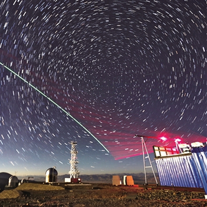 图为“墨子号”量子科学实验卫星与阿里量子隐形传态实验平台建立天地链路(合成照片)。