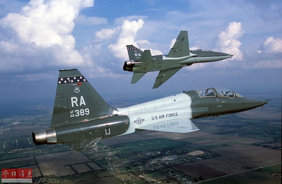 图为美空军T-38教练机双机编队飞行。