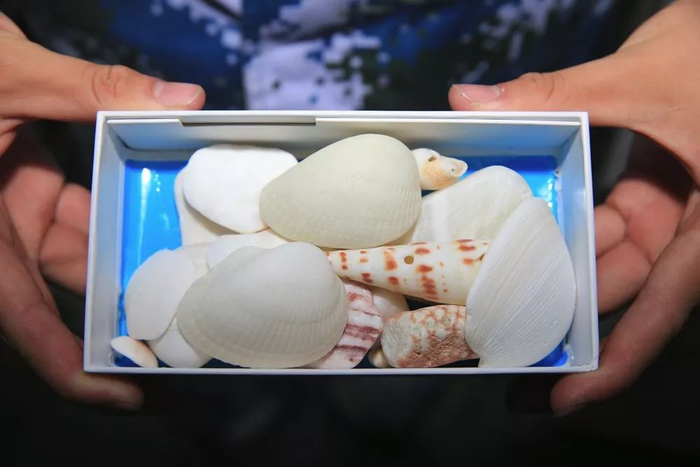 我都会捡一块石头或者贝壳带上
