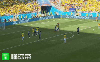 第40分钟,金特罗任意球直接破门,哥伦比亚1-1日本。