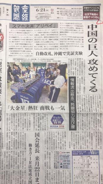 【环球网报道 驻日本特约记者 蒋丰】继在中国城市公交系统推出移动支付后,阿里巴巴近日又与日本欧力士集团合作,计划在冲绳城市交通系统中推出移动支付,检证实验于6月举行。这将是中国的移动支付首次进入日本交通系统。日本媒体得知这一消息,反应非常强烈。6月21日,《产经新闻》甚至动用头版头条,以“中国巨人打来了”为题进行了报道。