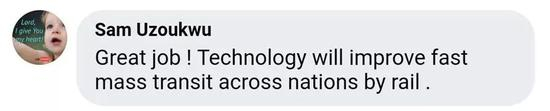 Sam Uzoukwu:真棒!高科技将通过铁路实现国家间的高速轨道运输。