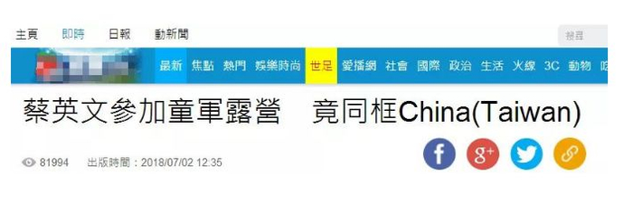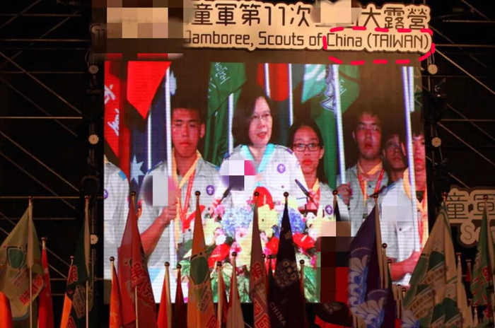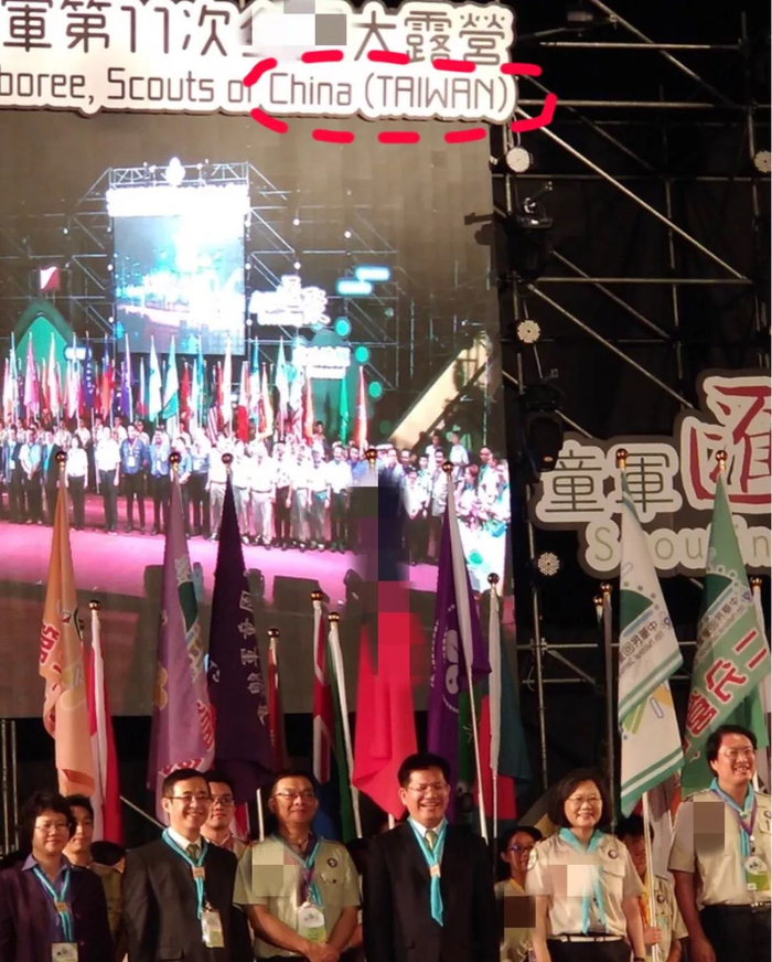 蔡英文在参加童军大露营时,正好站在了China(Taiwan)的字样下 ,网友笑疯,“这是天意啊……”