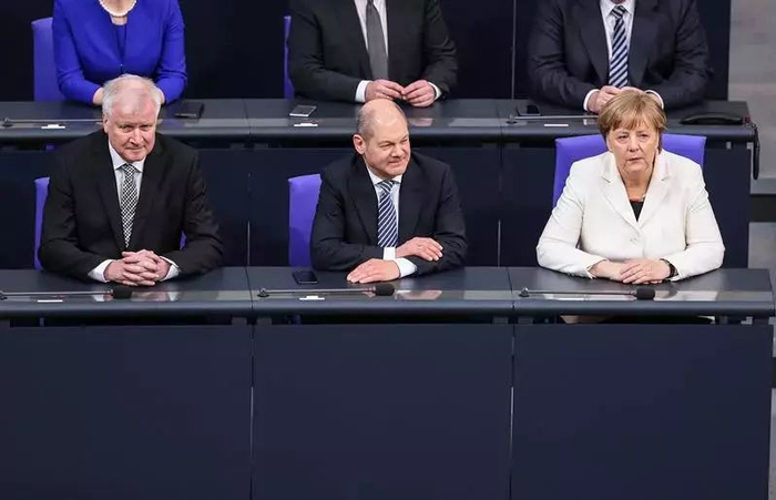 ▲3月14日,德国新一届联邦政府成员在联邦议院全体会议上宣誓就职,德国总理默克尔(右)、德国副总理兼财政部长肖尔茨(中)和内政部长泽霍费尔出席宣誓仪式。新华社记者单宇琦摄