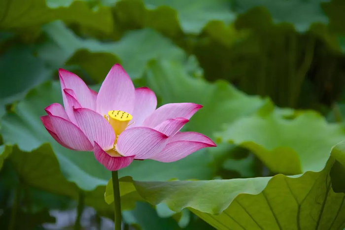 一进入夏天,莲花宝地澳门,就有接天莲叶无穷碧、映日荷花别样红的盛景了。清晨早起,打开窗户,放眼望德圣母湾,一红一绿一样俏,一花一叶一塘娇,阵阵莲香随风飘入,浸溢肺腑,周身迅即会被芬芳簇拥。