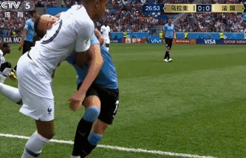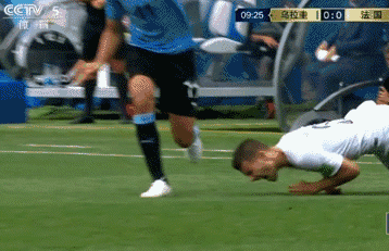 法国后卫埃尔南德斯上演“内马尔”翻滚。
