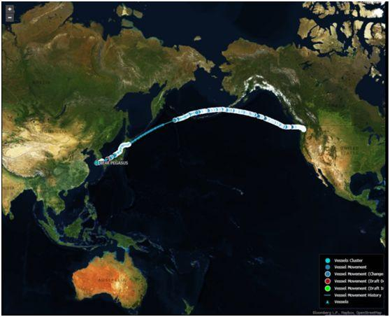 据彭博社报道,这艘与时间赛跑的货船名为“飞马峰”(Peak Pegasus)。一位不愿透露姓名的知情者告诉彭博社,如果“飞马峰”可以按照原定航程行进,将在北京时间今天下午5点抵达大连。那样的话,应该可以在中国对美国大豆加征关税前进入中国。