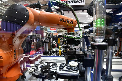 资料图片:德国库卡展出的工业机器人。(新华社)