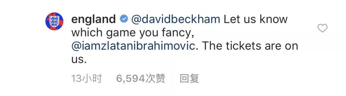 在比赛结束后,英格兰队也开始在下面“起哄”说:“告诉我们你喜欢哪场球,票包在我们身上!”,随后还“坏坏地”给伊布评论了一个“再见”的表情。