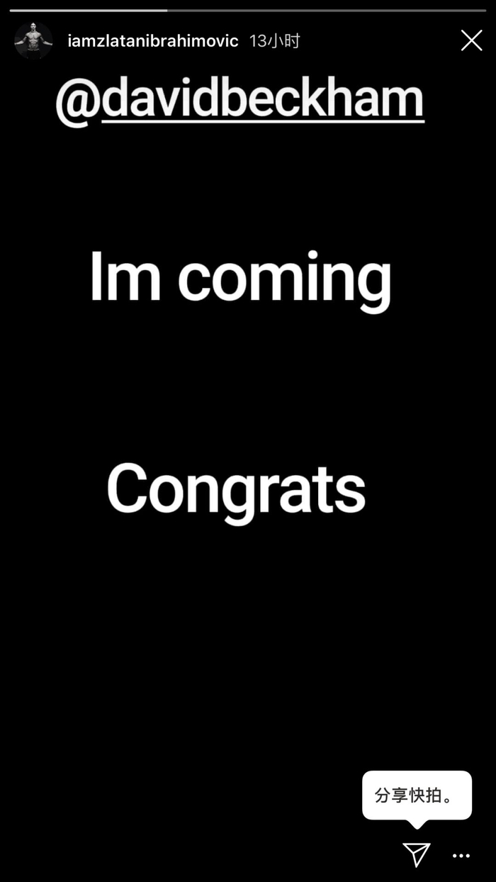 伊布也在赛后大气地回应,“我来了,祝贺!”
