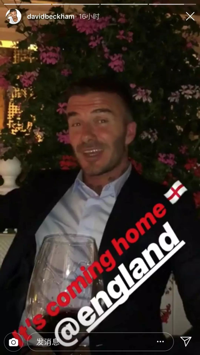 其实,在比赛还没结束时,贝克哈姆就在社交网站上发布了一则短视频,并在视频中兴奋又傲娇地唱起了那首熟悉的歌:“It’s coming home”。