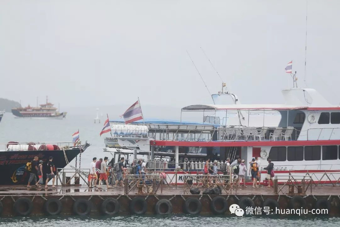 今天清晨,环环(ID:huanqiu-com)发现,仍有大批外国游客(多数是中国人)在查龙码头乘船出海。
