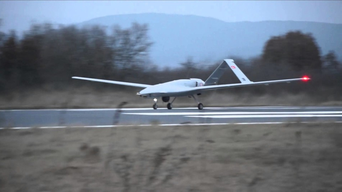 Bayraktar TB2攻击型无人机起飞。