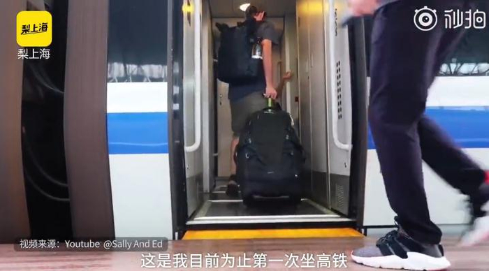 该情侣在视频中介绍,要离开上海去成都,其之前从澳大利亚悉尼到英国伦敦都是坐飞机,今天要坐高铁从上海去成都,“这是我目前为止第一次坐高铁”。