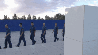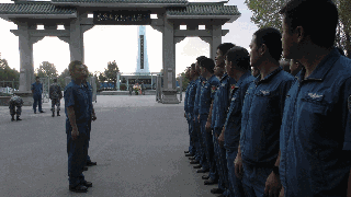 所有空勤人员下车后,整齐列队怀着无比仰慕的心情迈入烈士陵园大门。