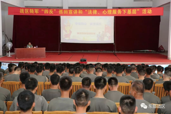 根据东部战区陆军“四反”巡回宣讲和“法律、心理服务下基层”(三送服务队)活动的计划安排,7月13日,在东部战区陆军保卫处朱朝明处长的带领下,一行11人来到该旅,带着精心打造的“服务套餐”,为基层部队一线指战员送来一抹凉风。