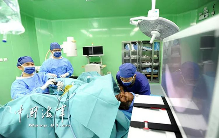 ▲泌尿科医生为61岁的巴新患者Mimore Taba在全麻下成功实施囊肿切除和激光碎石手术,既是和平方舟首例,也是巴新国内首例。