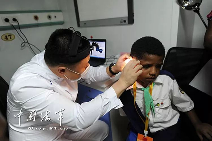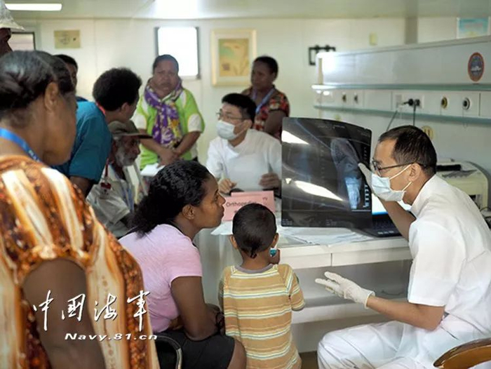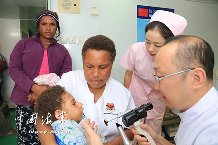 ▲和平方舟医护人员赴陶洛马军医院为军人和家属诊疗。