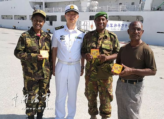 和平方舟还举办了富有中国传统文化特色的甲板招待会,派出文化联谊分队赴国防军子弟学校开展文化联谊活动,与巴新国防军官兵进行了足球友谊赛,讲好中国故事,传播中国文化,展示中国形象,增进两国两军交流。