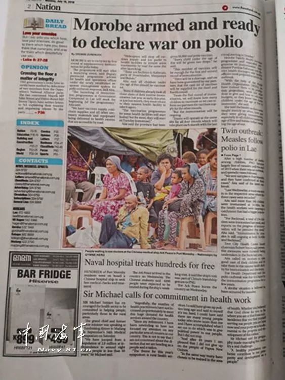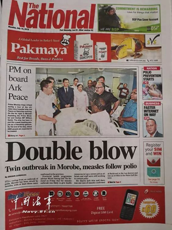 访问期间,《国民报》《信使邮报》、巴新电视台、国家广播电台等巴新主流媒体纷纷在重要版面或时段连续推出报道,高度称赞和平方舟传扬和平、传播友谊、传递爱心,为促进中巴新友谊、增进当地民众福祉作出了新贡献。