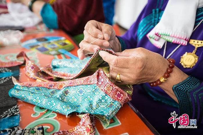 一名老人正在缝制传统民族服饰。 中国网记者 伦晓璇 摄