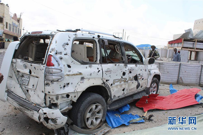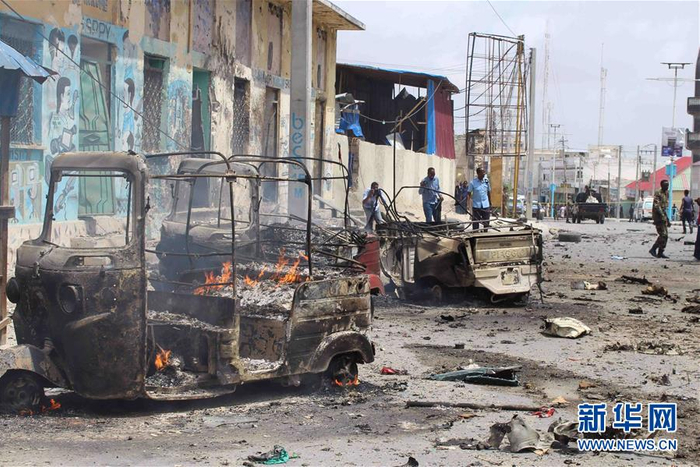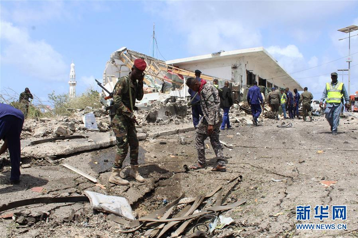 这是7月7日在索马里首都摩加迪沙拍摄的袭击现场。据目击者称,索马里首都摩加迪沙7日响起巨大爆炸声。新华社发(费萨尔·伊塞摄)