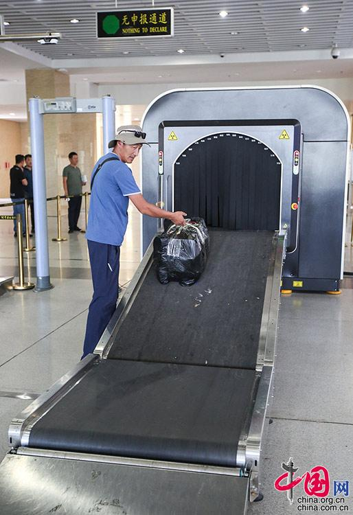 一名旅客正在进行安检。中国网记者 伦晓璇 摄
