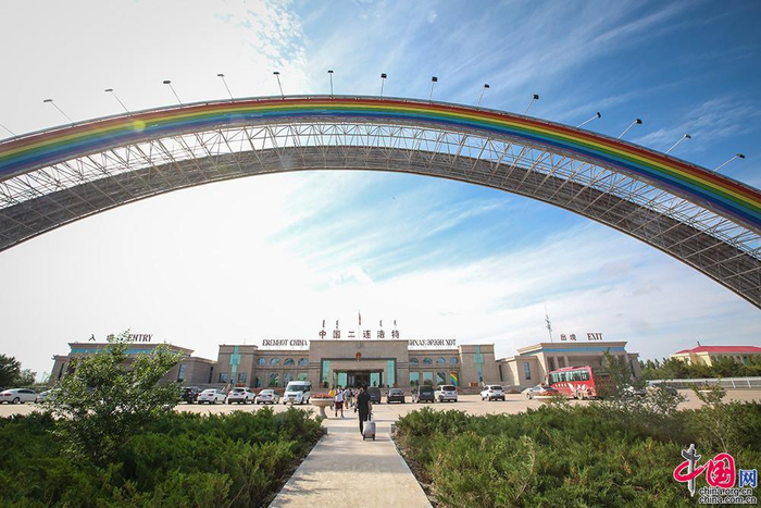 二连浩特公路口岸象征着中蒙两国友谊的彩虹桥。中国网记者 伦晓璇 摄