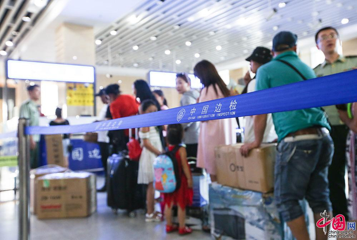 边检官兵为旅客办理通关手续。2016年起,二连边防检查站启用新型数字多功能智能验证台,提高了通关效率。中国网记者 伦晓璇 摄