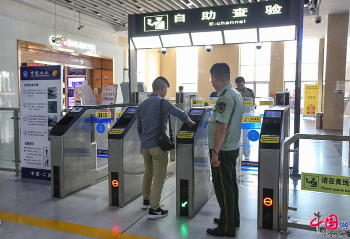 旅客通过边检自助查验通道通关。驻守在二连浩特口岸的二连边防检查站,是一支现役公安边防部队,1956年伴随北京——乌兰巴托——莫斯科国际联运列车的正式开通而成立,主要担负着二连口岸铁路客货运、公路客货运和国际机场3种通关形式5个执勤现场的出入境边防检查任务和3.2平方公里边境线、2.58平方公里口岸限定区域的监护管理任务。中国网记者 伦晓璇 摄中国网记者 伦晓璇 摄