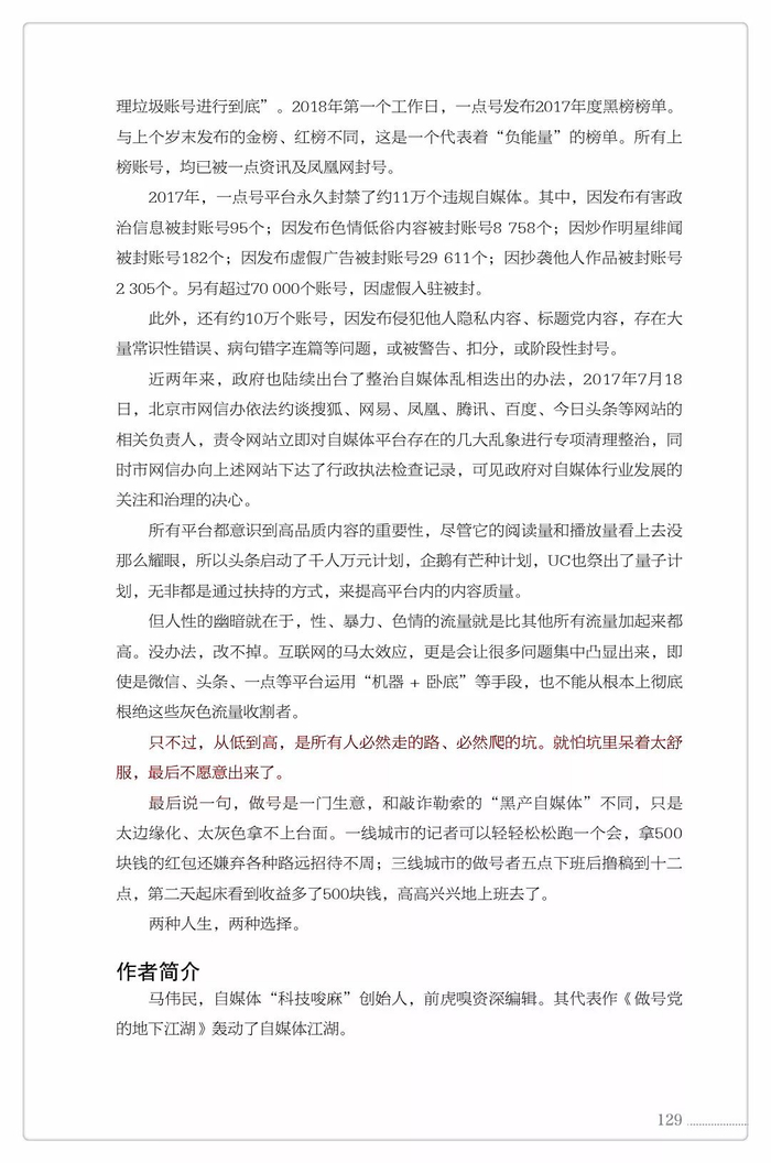 3.我们这一代传统媒体人,是身份最为复杂的一代媒体人。我们亲历了都市报的最后荣光,感受了纸媒消亡的切肤之痛,也体验了新媒体创业的五味杂陈。但无论怎样变化,很多同行和我一样,都有一个共同的坚守和信念:谣言、肤浅、标题党绝不是新媒体的特质,优质内容、深度内容总会有市场。