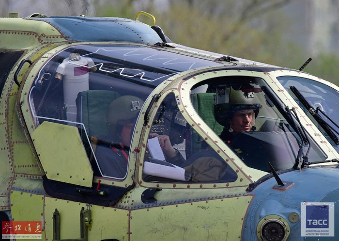 图为在卡-52座舱中,进行质检测试飞行的制造厂试飞员。