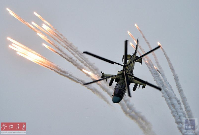 卡-52释放红外热焰弹。