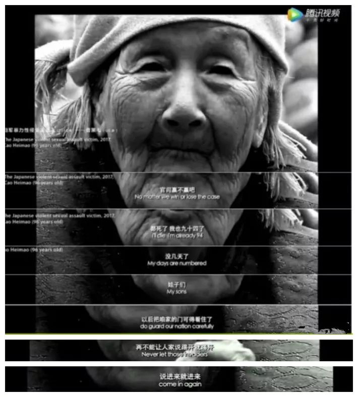 “今天我怀着极其沉痛的心情,悼念慰安妇受害者曹黑毛老人,曹黑毛老人2018年7月24日上午10时许,在家中病逝,享年96岁。