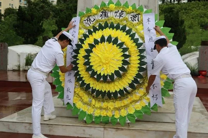 一个没有英雄的民族是可悲的,一个不知道尊重英雄的民族是可耻的。8时50分,仪式正式开始,全体官兵奏唱《中国人民解放军军歌》。随后,《献花曲》响起,2名礼仪兵缓步走向烈士纪念碑,将花圈安放在烈士纪念碑前并仔细整理挽联。全体官兵向革命烈士三鞠躬,默哀一分钟,沉痛哀思在西沙海战中牺牲的18位烈士。