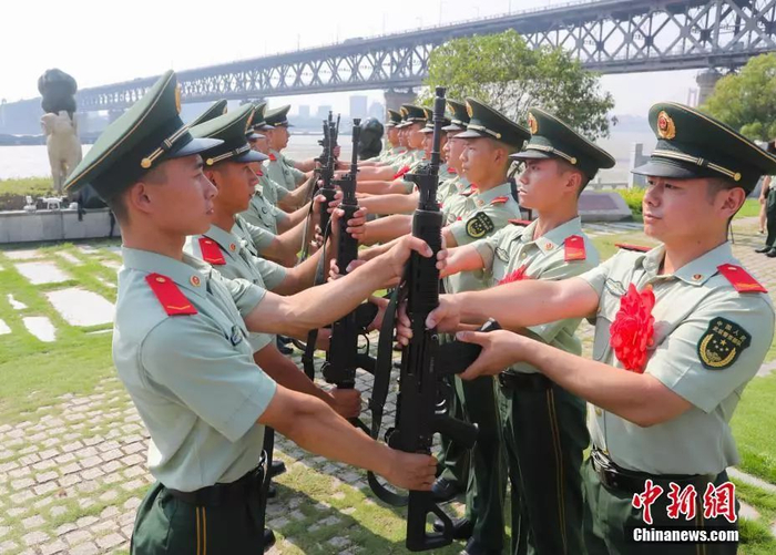 资料图:2017年8月29日,武警湖北省总队武汉市支队组织服役期满即将退伍的老兵“向钢枪、向大桥、向哨位”告别。 中新社记者 张畅 摄